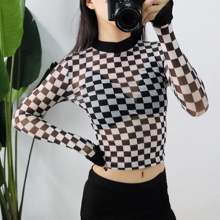 Elevate your wardrobe with our Sheer Checkered Long Sleeve Top, a perfect blend of style and comfort. Crafted from a premium cotton blend, this top features a beautiful checkered pattern that adds a touch of sophistication to any outfit. The main fabric composition consists of 91%-99% cotton, ensuring a soft and breathable feel against your skin, while spandex offers just the right amount of stretch for a flattering fit.